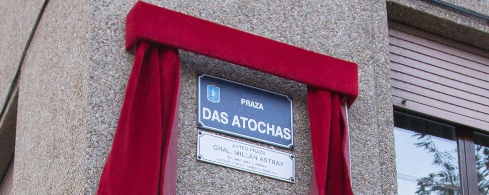 Millán Astray ha desaparecido oficialmente del callejero coruñés. El alcalde de A Coruña, Xulio Ferreiro, ha sido el encargado de descubrir la placa de la Praza das Atochas, que sustituye a la que daba nombre el fundador de la legión. Ejecuta así el acuerdo alcanzado por el Pleno en 2009 para el cambio de designación en cumplimento de la Lei de Memoria Histórica, que contempla la retirada de toda la simbología franquista.