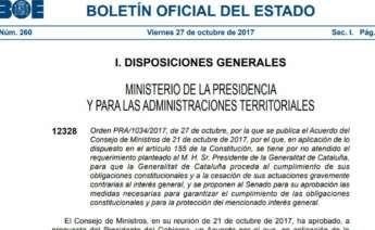 El BOE avanza la destitución del presidente de la Generalitat, Carles Puigdemont, el vicepresidente, Oriol Junqueras, y los consejeros del Govern