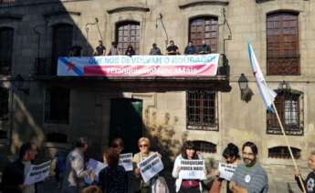 Militantes y simpatizantes del BNG han ocupado simbólicamente la Casa Cornide para denunciar los "privilegios" de la familia Franco y exigir su devolución
