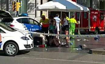 Según las primeras informaciones una camioneta blanca impactó en un grupo de peatones en la parte superior de Las Ramblas