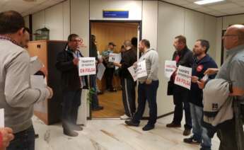 Un piquete de la huelga de autobuses ocupó este miércoles la Dirección Xeral de Mobilidade para hacerse ver ante la Xunta