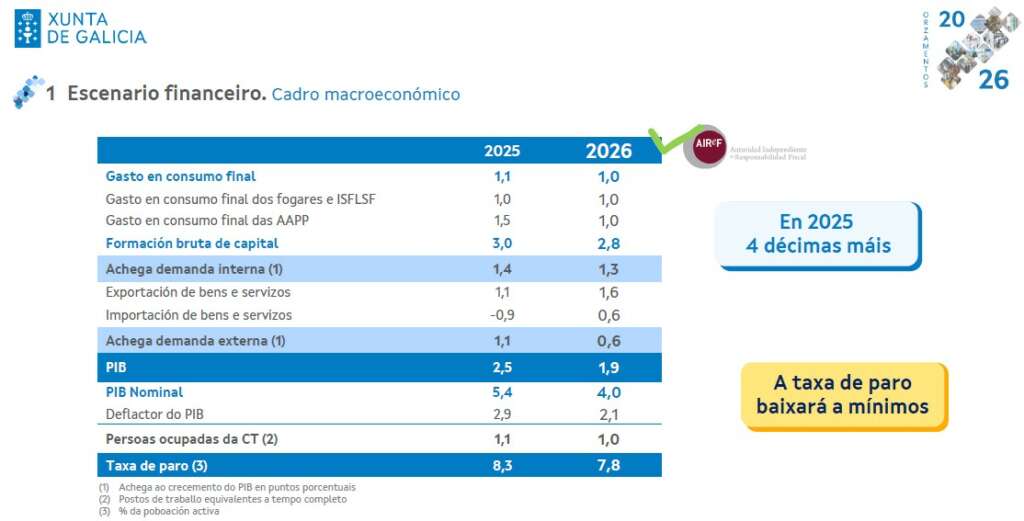 La Consellería de Facenda dibuja un 2026 con una tasa de paro inédita en Galicia desde el estallido de la burbuja inmobiliaria, pero con un escenario con menor inversiones de las empresas, y una política de gasto de la propia administración condicionada por las grandes competencias transferidas