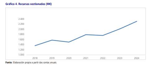 «El activo de las entidades instrumentales se mantuvo estable en el entorno de los 3.400 millones de euros hasta el ejercicio 2020. En 2021 experimentó un incremento del 10% que se produce fundamentalmente en las agencias públicas, concretamente en el Igape y la Amtega, y también en las sociedades mercantiles, donde los incrementos se producen en la CSAG, ya que reconoció entre los créditos con las administraciones públicas los importes del IVA por los que mantiene litigio con la Agencia Tributaria. En los ejercicios 2022, 2023 y 2024, el activo de las entidades instrumentales experimentó un crecimiento del 2%, 4% y 8% respectivamente», dice el informe del Consello de Contas.