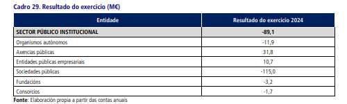 El más de un centenar de entidades que conforman la administración paralela de la Xunta no generó beneficios en 2024, aunque el grueso de los números rojos se concentró en una sola, la CRTVG. En conjunto, las pérdidas ascendieron a 89 millones, marcadas por el resultado negativo de la radio-televisión pública, que ascendió en aquel curso a 113 millones. La deuda de los distintos entes ascendía a 897,5 millones.