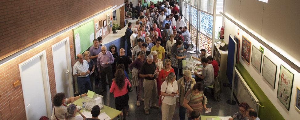 Si estas elecciones se decidiesen por el número de apoderados que aporta cada candidatura, Junts Pel Sí ganaría por goleada. Una crónica de cómo se ha vivido la mañana en dos colegios del Eixample barcelonés