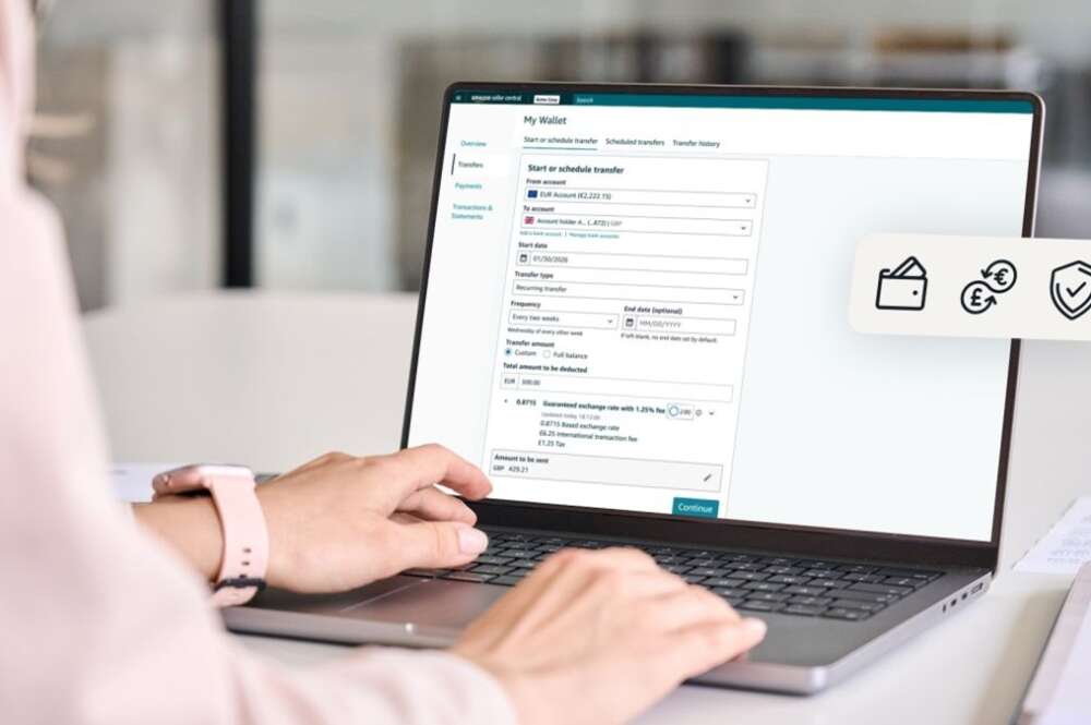 También subraya que los vendedores pueden elegir entre transferencias únicas o configurar transferencias automáticas periódicas (semanales, quincenales o mensuales) para enviar automáticamente una cantidad fija de su saldo restante de la tienda de Amazon a su cuenta bancaria, lo que reduce los pasos manuales y los gastos generales operativos. Solo se aplica una comisión a las transferencias internacionales, que disminuye a medida que crece su negocio con Amazon. El coste total siempre es visible antes de confirmar cualquier transferencia. Por otra parte, subraya que los vendedores de Amazon accederán a tipos de cambio competitivos «sin recargos ni costes ocultos y podrán consultar el tipo de cambio real antes de realizar cada transferencia».