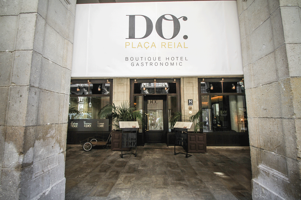 Los propietarios tenían una idea clara de lo que querían hacer desde el principio: Boutic Hotel Gastronomic y además D.O., denominación de origen, una alusión al producto de procedencia reconocida e identificable. Tiene tres ofertas. La Terraza, bajo los arcos de la plaza Reial; el Terrat, en el último piso; y la Cuina, en el sótano. El primer espacio, para turistas, es de tapas; el segundo, para huéspedes y clientes externos, tapas más sofisticadas; y el tercero, para quienes deseen tener una experiencia gastronómica, con una carta clásica y tres menús.