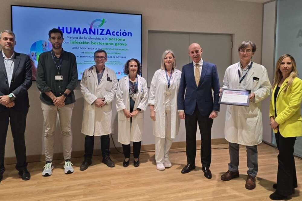 El Servicio de Medicina Interna del Hospital Universitario 12 de Octubre ha obtenido la certificación en humanización de la atención a pacientes con infección bacteriana grave. Este distintivo, otorgado por la Fundación Humans en el marco del proyecto HUMANIZAcción, con el apoyo de Angelini Pharma, reconoce el compromiso y la labor del hospital por implantar un modelo asistencial integral y centrado en las personas.