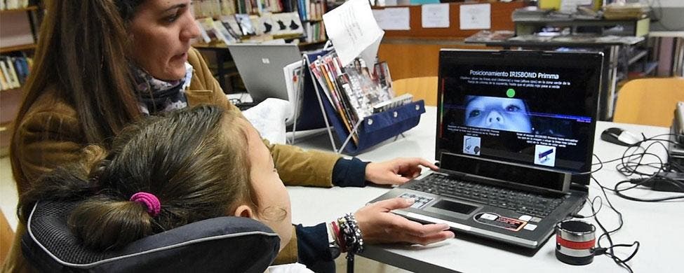 La plataforma actual de Irisbond, explican desde la empresa, funciona a base de reflejos. El dispositivo que incorpora el equipo emite haces de luz infrarroja, invisibles e inocuos para el ojo humano, que generan una serie de destellos al contacto con la córnea. La videocámara incorporada registra estos reflejos y, a través de un sistema de algoritmos, convierte el movimiento de los ojos en coordenadas de posición del ratón en la pantalla. Una especie de extensión imaginaria de la mirada para quien no puede alcanzar el teclado o el ratón por sus propios medios.