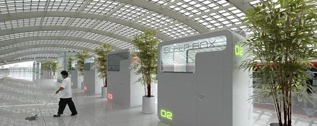 La simpleza del concepto que esta empresa constructora ha ideado puede convertirse en una solución para los que pasan gran parte de sus vidas en los aeropuertos y estaciones. El espacio es modulable, de diseño futurista y funcional para descansar, ventilado y con privacidad asegurada, ya que dispone de persianas eléctricas. Está dotado de distintos compartimentos para dejar el equipaje, descansar o trabajar vía wifi.