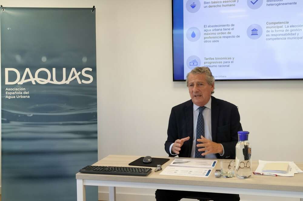 El presidente de la Asociación Española del Agua Urbana (DAQUAS), Jesús Maza, en rueda de prensa este miércoles.