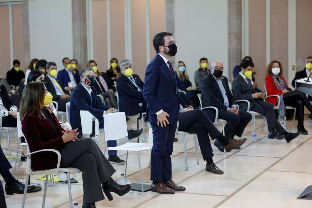 Detalle que retener: Pere Aragonès llevaba un mascarilla de color negro que, según indica Eva Heller, tiene que ver con lo misterioso, con la magia, con la mentira, con la negación, con el odio, con la mala suerte y con el poder. Por lo demás, la autora señala que la combinación de negro y amarillo equivale a una mezcla de egoísmo y culpa.