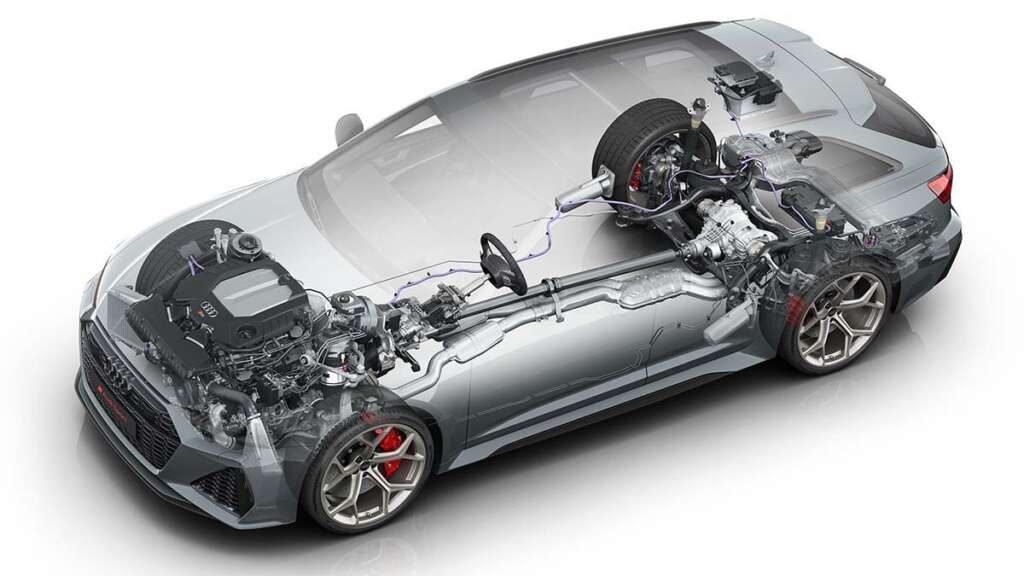 También su consumo es más alto, con 12,5 l/100 km para el performance y una décima menos en el RS 6 normal. Se trata de cifras muy elevadas, máxime teniendo en cuenta que ambos motores cuentan con desactivación de cilindros en situaciones de baja carga, cajas de cambio con funcionalidad de circulación por inercia y sistemas de hibridación ligera, algo lógico si tenemos en cuenta que necesitan la instalación eléctrica de 48 voltios para que el actuador de la dirección activa pueda trabajar rápidamente.