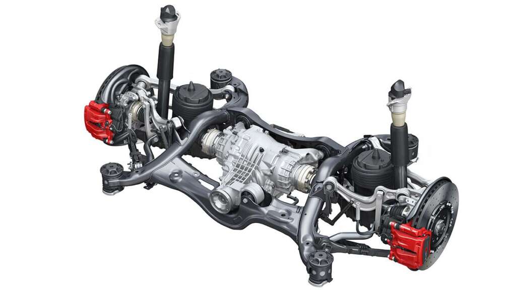 En cualquier caso, el motor V8 de cuatro litros sigue acoplado a una caja de cambios automática de ocho relaciones con ajustes deportivos, a cuya salida se instala un nuevo diferencial autoblocante mecánico que ahora es más compacto y que entrega, por defecto, el 60 % de la fuerza disponible al tren trasero, mientras el 40 % restante se reenvía al eje delantero mediante un árbol de transmisión integrado en la propia carcasa de la caja de cambios, si bien esta relación es variable, y el eje delantero puede asumir hasta un 70 % del par, mientras el trasero puede llegar a gestionar el 85 % de la fuerza liberada por el motor.