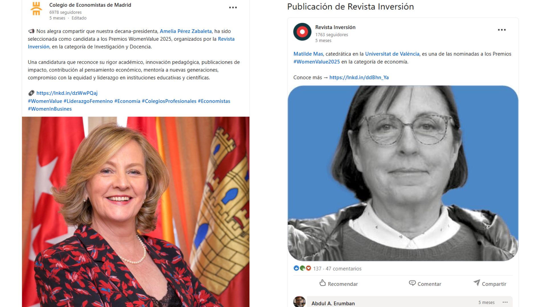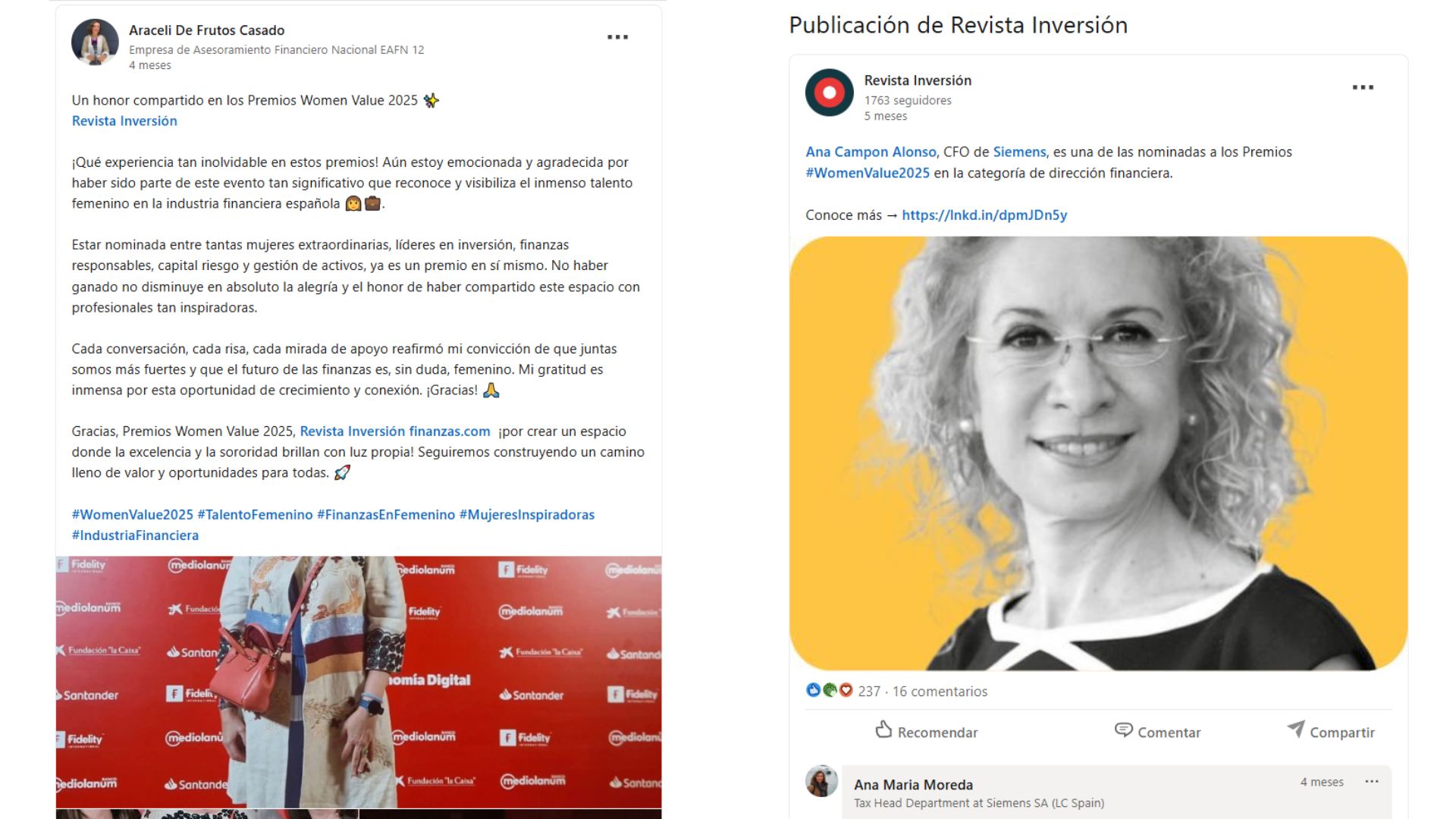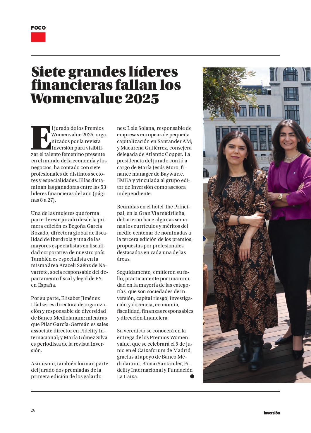 La revista Inversión, creadora y fundadora del proyecto Womenvalue, lideró su desarrollo desde la idea inicial hasta su ejecución completa. Definió el enfoque editorial, estructuró el modelo de reconocimiento, seleccionó las categorías, organizó el evento y diseñó toda la estrategia de comunicación. Esto incluyó la cobertura previa —con artículos, entrevistas, newsletters y campañas en redes sociales—, la producción audiovisual, la difusión multiplataforma y la creación de una comunidad propia en torno a Womenvalue. Todo el proceso se orientó a dar voz al talento femenino y generar contenido de valor que conectara con el ecosistema financiero y empresarial.