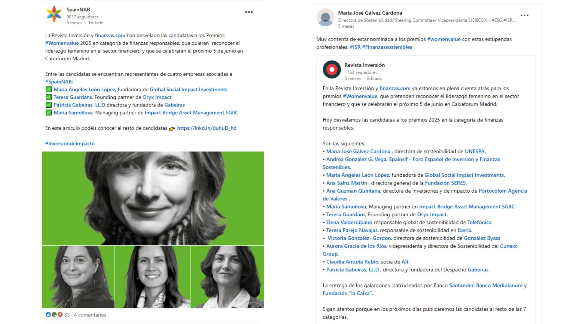 - Publicación de artículos y entrevistas previas en finanzas.com sobre las candidatas.