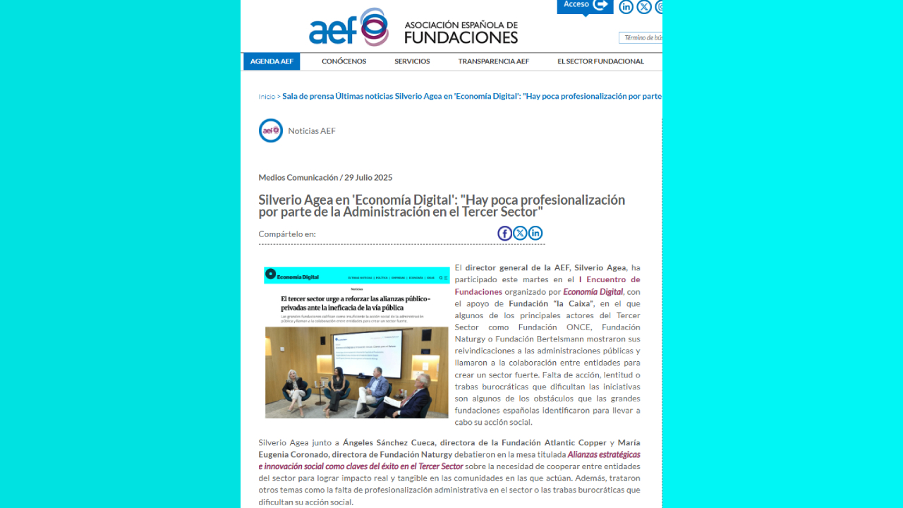 - Las grandes fundaciones se reúnen en el I Encuentro del Tercer Sector organizado por Economía Digital, 24 de julio