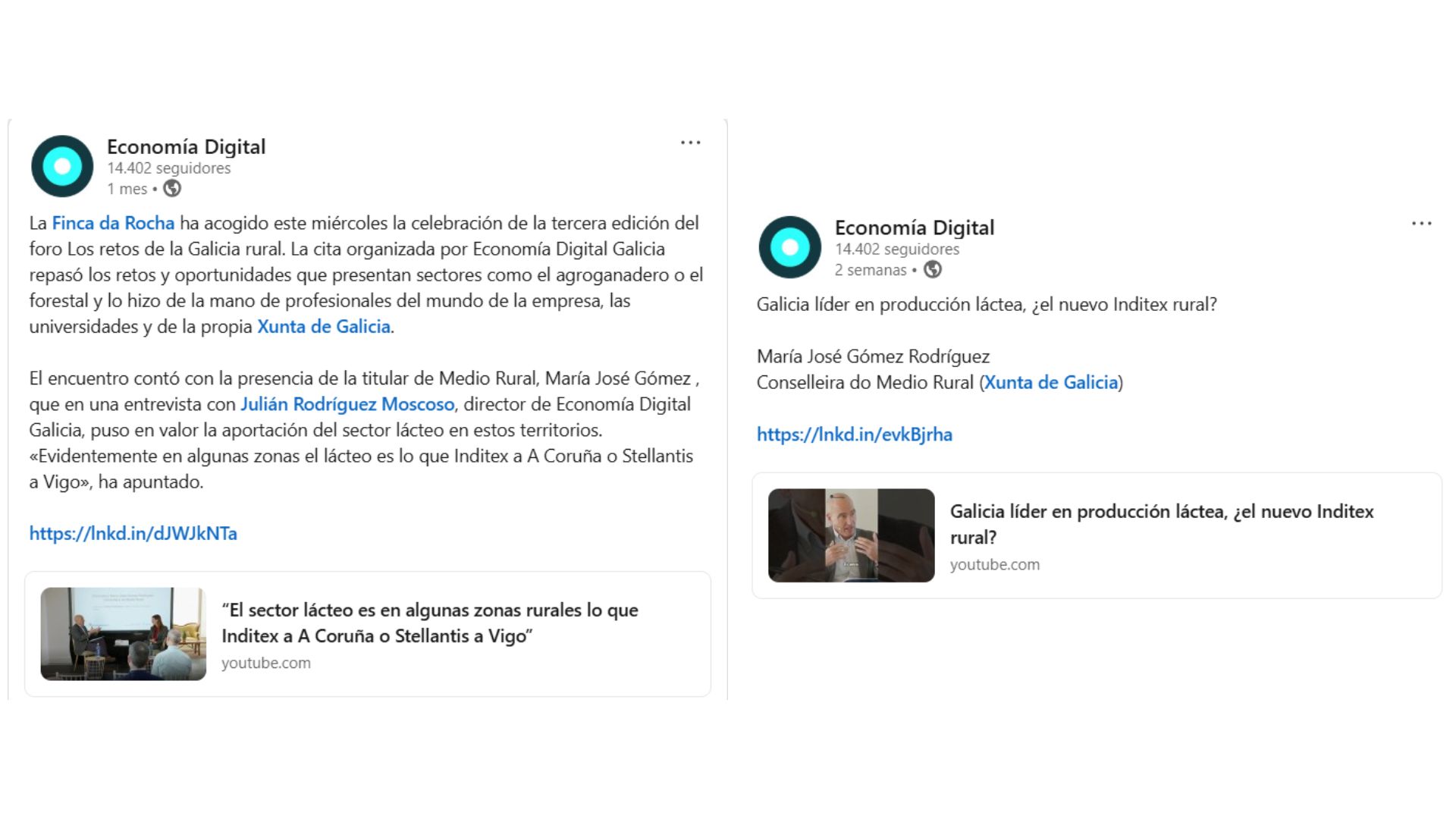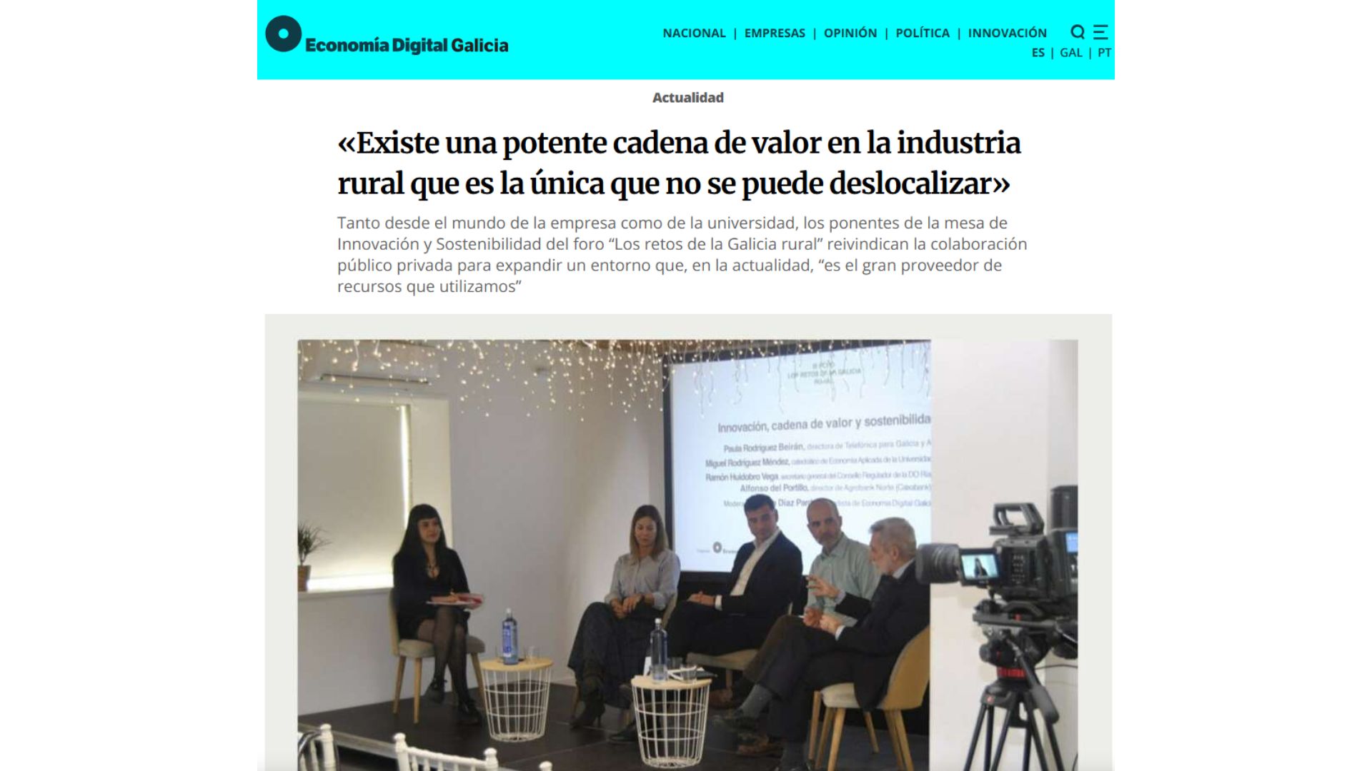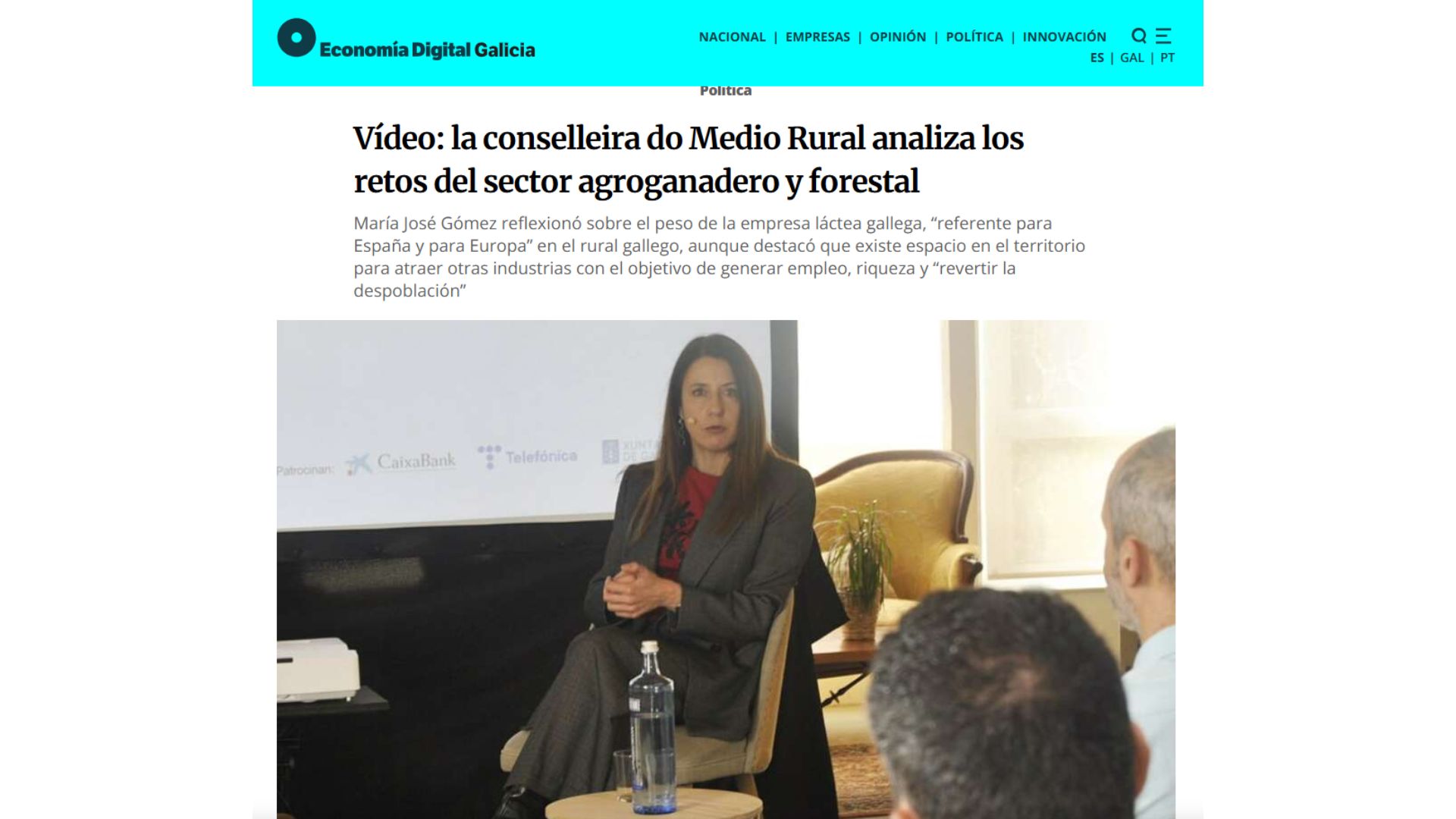 La tercera edición del foro “Los retos de la Galicia rural”, organizado por Economía Digital Galicia con la colaboración de la Consellería do Medio Rural, Telefónica y CaixaBank, tuvo lugar el pasado 26 de noviembre de 2025 en la Finca da Rocha, en Santiago de Compostela. Durante la jornada se reunieron referentes del ámbito académico, empresarial, forestal y de la administración autonómica, incluyendo a la conselleira María José Gómez. Los debates se centraron en cómo la innovación, la cadena de valor, la sostenibilidad y la gestión forestal pueden servir como motores esenciales para el desarrollo rural en Galicia.