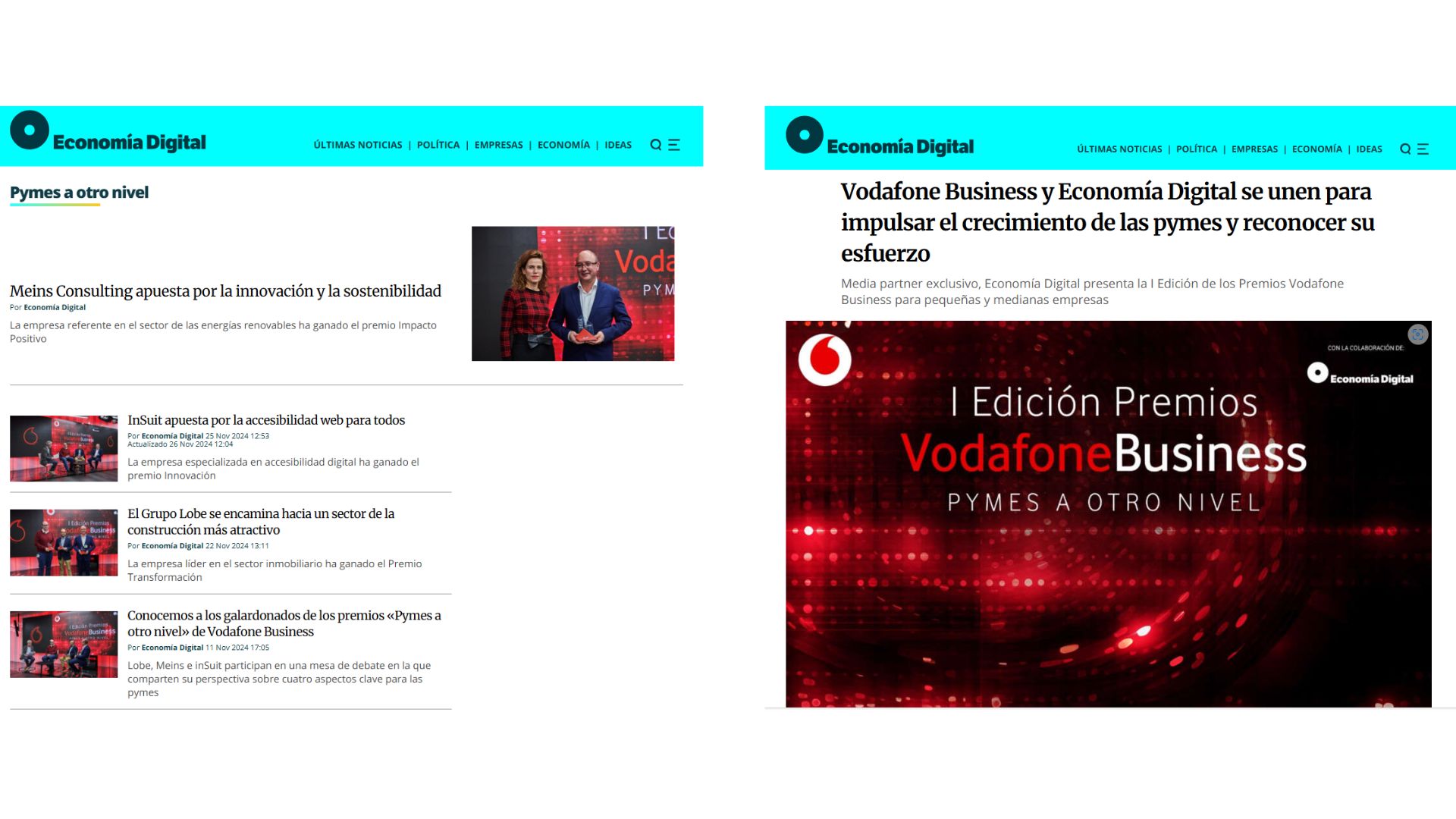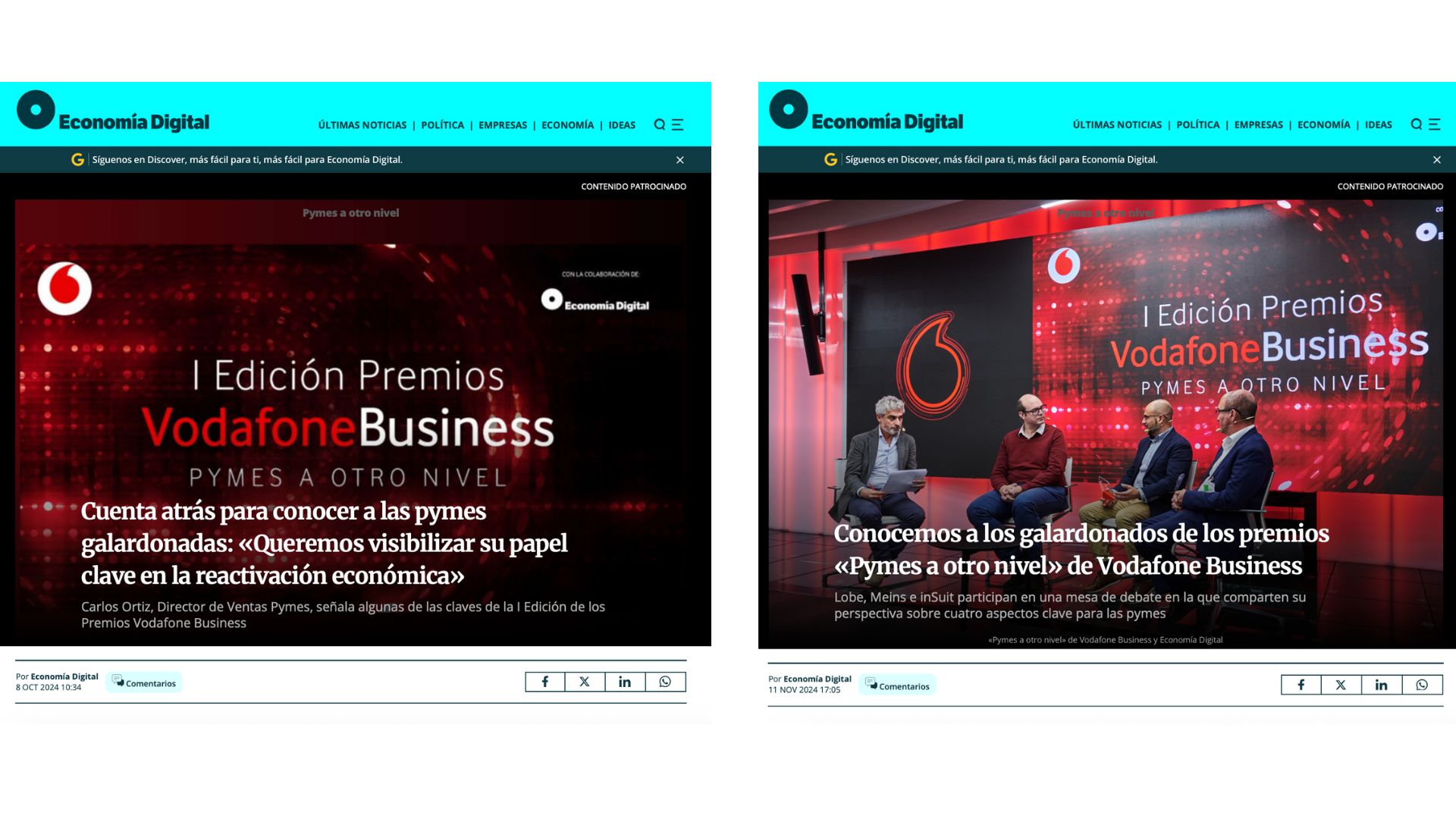 os Premios Pymes a Otro Nivel fueron una acción conjunta entre Vodafone Business y Economía Digital, creada para reconocer a pequeñas y medianas empresas que destacan por su innovación, capacidad de transformación y compromiso con el impacto positivo. La premiación se estructuró en tres categorías —Innovación, Transformación e Impacto Positivo— y se celebró en un evento presencial donde se entregaron los galardones y se compartieron las historias de las empresas seleccionadas. El principal reconocimiento fue la visibilidad: las pymes premiadas fueron protagonistas de contenidos editoriales, entrevistas, vídeos y difusión en múltiples canales.