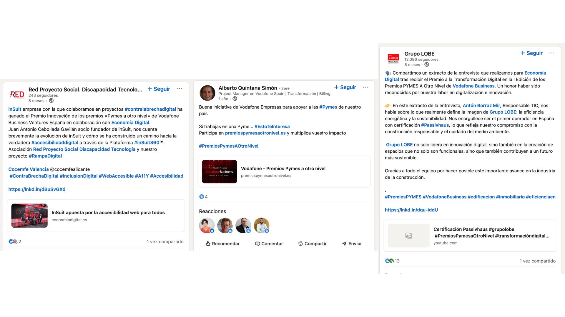 - Apoyo en la distribución de los vídeos de Caso de Éxito producidos por Vodafone Business.