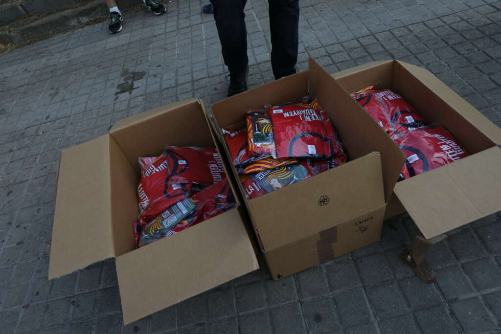 Este año no iba a ser una excepción. En una manifestación menos organizada que la de años anteriores, los manifestantes tienen a disposición la camiseta oficial. La de este año es de color rojizo granate y tiene estampada el mensaje «Luchemos y ganemos la independencia».