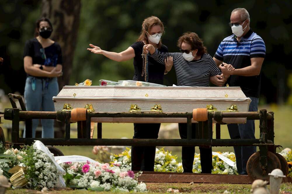 Una familia despide a un familiar durante un entierro en Brasilia (Brasil). EFE/ Joédson Alves.
