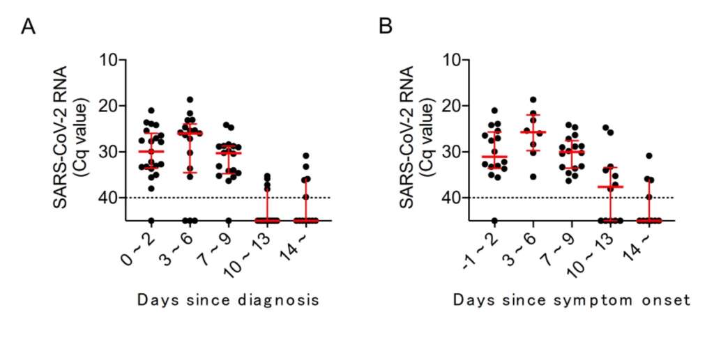 El Instituto Nacional de Enfermedades Infecciosas de Japón ha realizado un estudio sobre 21 pacientes que contrajeron la nueva cepa de la Covid-19 para tratar de determinar cuánto tiempo tardaban en dejar de ser infecciosos. Los resultados han apuntado a que la carga viral máxima se alcanzó en un periodo de entre tres y seis días después del inicio de los síntomas.