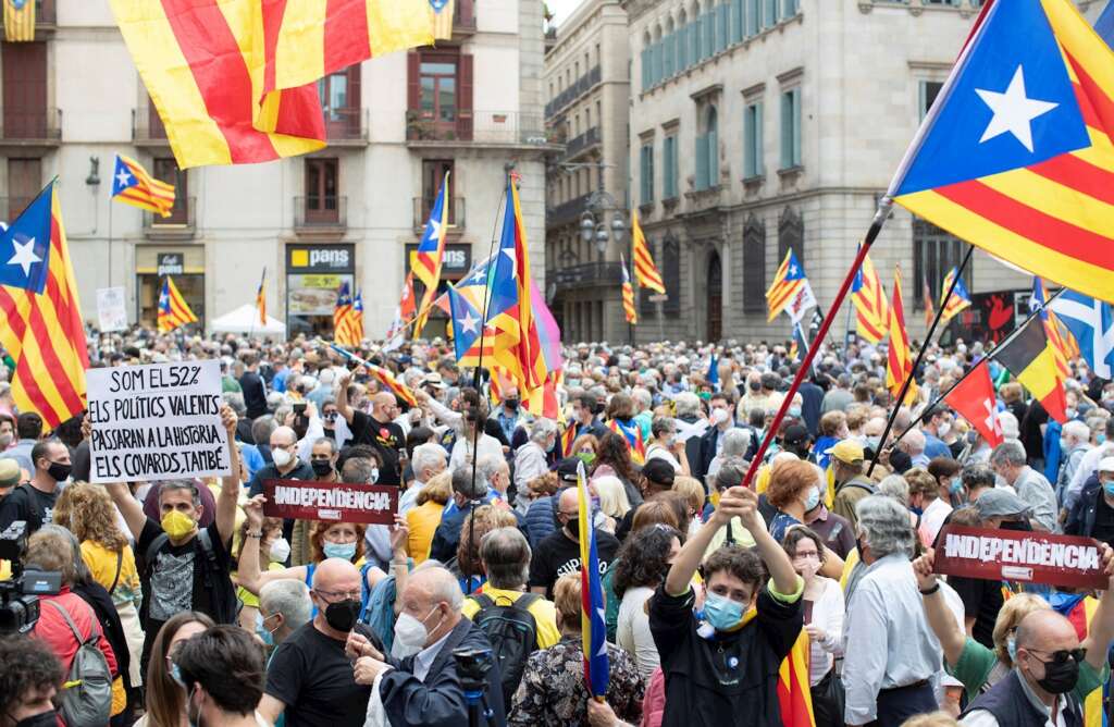 La Assemblea Nacional Catalana (ANC) convoca una concentración en la plaza Sant Jaume de Barcelona, frente al Palau de la Generalitat, para exigir a ERC y JxCat un pacto para formar un Govern independentista antes de que expire el plazo límite del 26 de mayo. EFE/Marta Pérez.