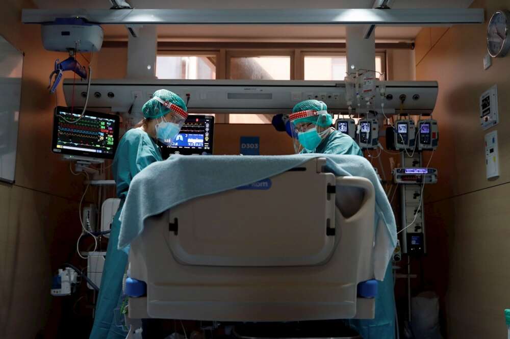 Dos profesionales sanitarios trabajan en la UCI del Hospital Vall d’Hebron de Barcelona. Cataluña es una de las regiones con una ocupación de las UCI catalogada como riesgo ‘extremo’ por el Ministerio de Sanidad | EFE/AE/Archivo