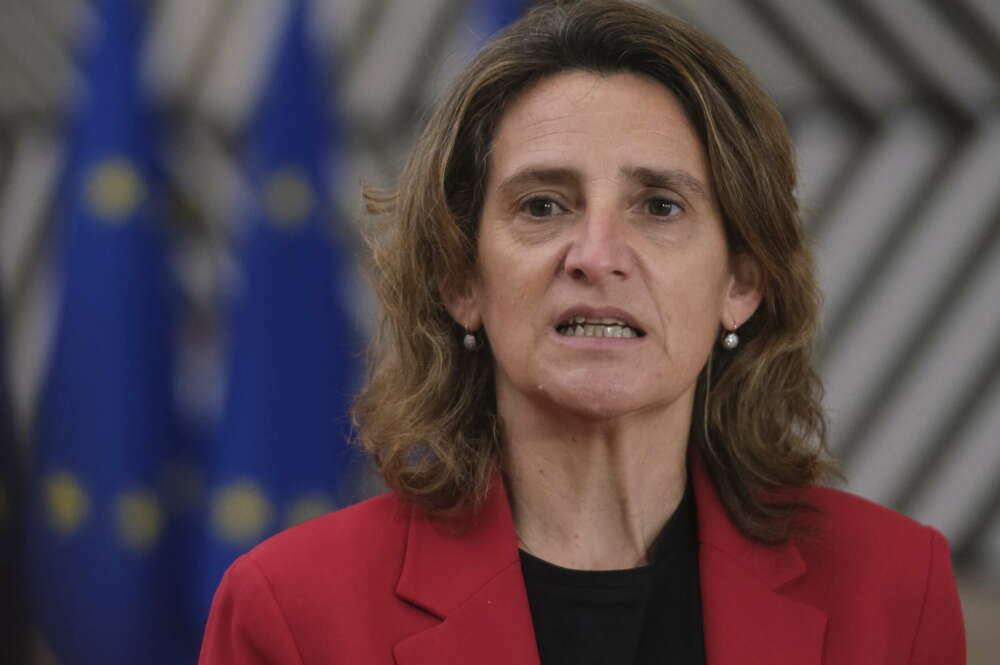 Brussels (Belgium), 17/03/2022.- Spanish Environment Minister, Teresa Ribera during an EU Environment ministers council in Brussels, Belgium, 17 March 2022. Six Greenpeace Belgium climbers scaled the facade of the EU Council headquarters to display a live counter of the amount of forest destroyed around the world while environment ministers meet to discuss a proposed EU law to tackle deforestation. (Bélgica, Bruselas) EFE/EPA/OLIVIER HOSLET