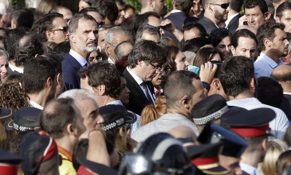 La presencia de Felipe VI, de Mariano Rajoy y de otras figuras de esa España que justifica todos los males, fue demasiada tentación para el independentismo de pancarta y bandera. La víspera, su más elocuente adalid, Carles Puigdemont, finiquitó la tregua que siguió a los atentados con una entrevista en el Financial Times en la que se reafirmaba en el calendario hacia el 1 de octubre.