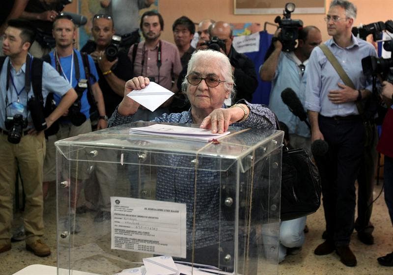 Las urnas ya se han cerrado en Grecia. En apenas unas tres horas se conocerán las primeras estimaciones fiables sobre el resultado de las elecciones anticipadas que mantienen en vilo a toda la zona euro. De momento, las estimaciones oficiosas dan un respiro a la comunidad internacional ya que los conservadores de Nueva Democracia parecen haber obtenido dos puntos de ventaja sobre la izquierda radical. Ello sería suficiente para optar al bono de 50 diputados extra fijado en pro de la estabilidad parlamentaria.