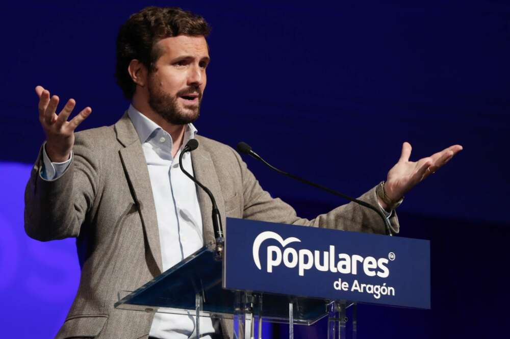 El PP lanza su campaña #MásGanaderíaMenosComunismo para las elecciones de Castilla y León. En la imagen, el líder de la formación, Pablo Casado, en un acto en Zaragoza. EFE/Javier Cebollada