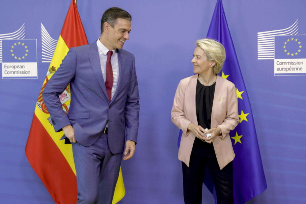 El presidente del Gobierno de España, Pedro Sánchez, y la presidenta de la Comisión Europea, Ursula Von der Leyen. EFE/EPA/OLIVIER HOSLET / POOL