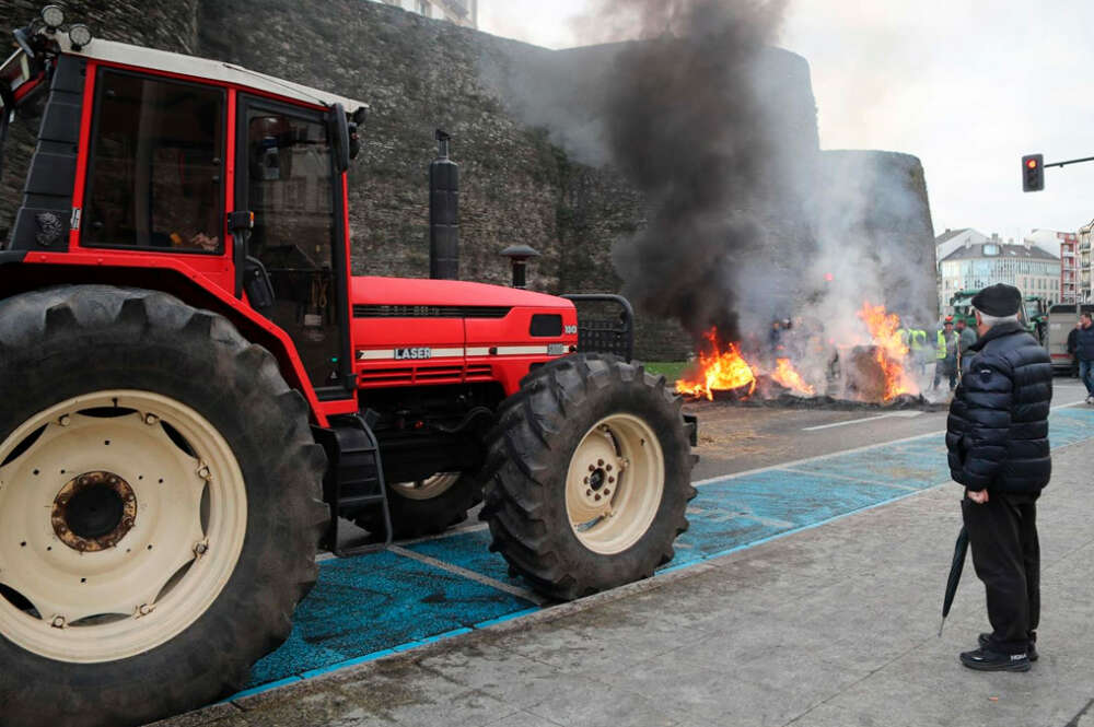 Fogueira de manifestantes da tractorada que rodeia a Muralha de Lugo desde a segunda-feira passada, em frente à Delegação da Xunta da Galiza em Lugo – Carlos Castro – Europa Press