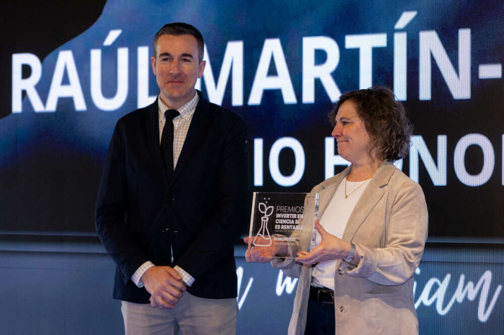 Eva Méndez recolhe o prémio póstumo a Raúl Martín-Ruíz (Ysios Capital) no encontro Investir em ciência se é rentável