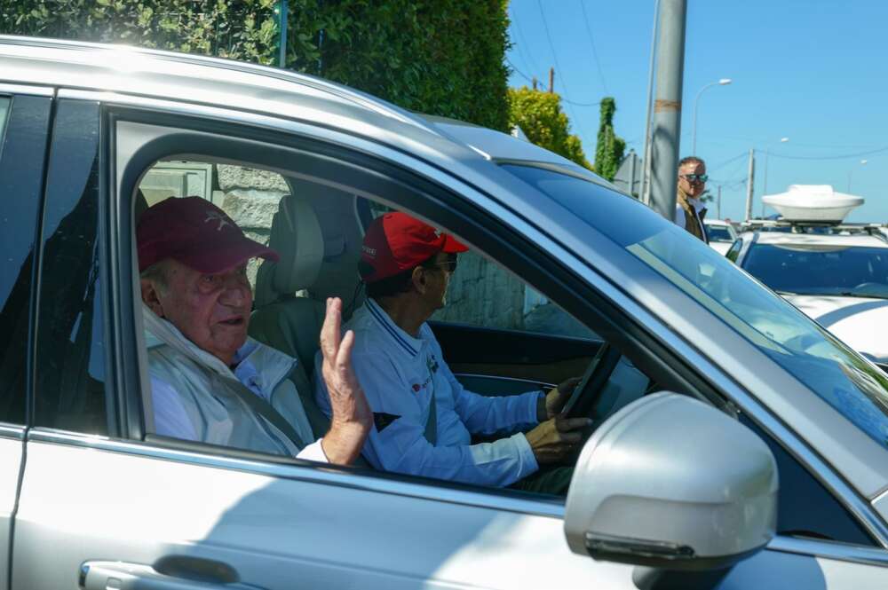 O ex monarca chegou às 11.50 horas desta manhã ao porto desportivo da localidade galega, acessando diretamente o pontão onde as embarcações permaneciam atracadas. Fez isso a bordo de um carro conduzido pelo seu amigo Pedro Campos – que o acolhe na sua casa de Nanín desde que aterrou em Galiza –, veículo do qual Juan Carlos I saudou a imprensa e os curiosos que esperavam no esporão.