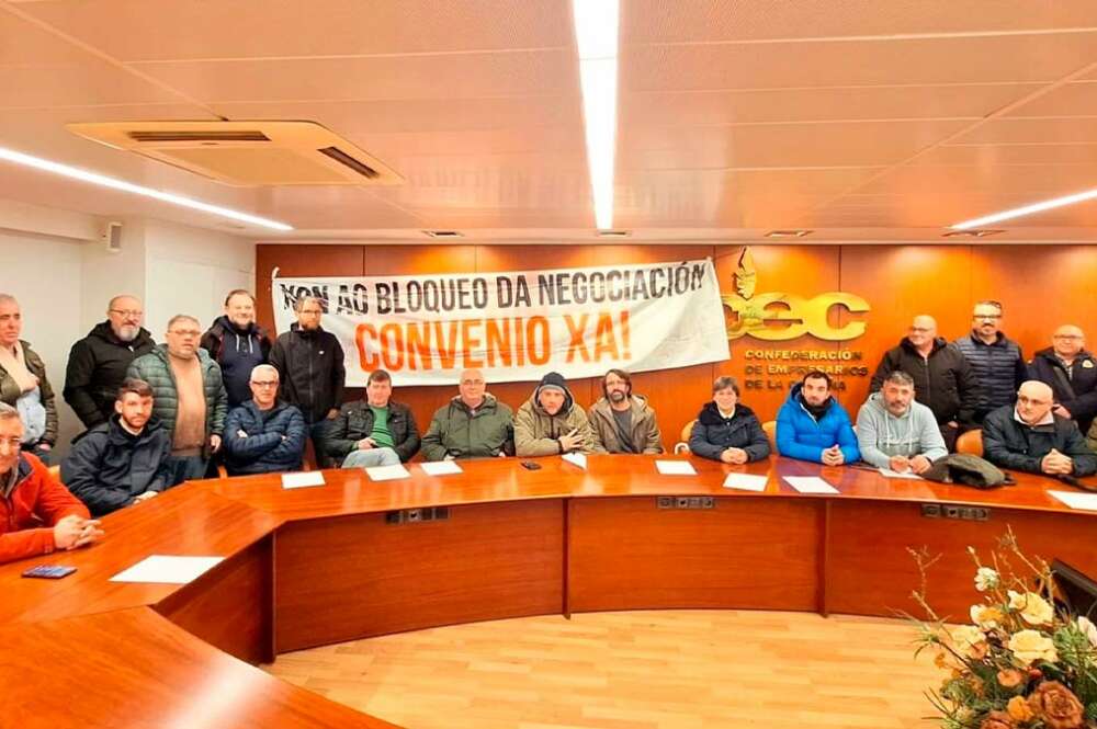 O secretário xeral da CIG, Paulo Carril, juntamente com delegados do transporte de passageiros e outros representantes da central sindicalista iniciaram nesta quarta-feira um fechamento na sede da patronal de empresários de A Coruña (CEC) “em protesto pelo bloqueio à negociação coletiva e a falta de reunião de mediação”.
