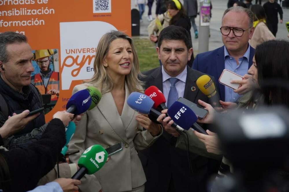 A vice-presidente segunda do Governo e ministra do Trabalho e Economia Social, Yolanda Díaz, atende aos meios de comunicação antes de encerrar o projeto itinerante ‘Formação em Rota’ / Europa Press