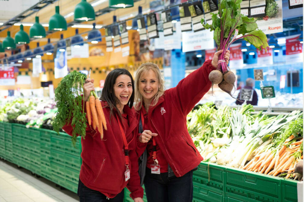 Trabalhadoras de Alcampo no balcão de frutaria de um hipermercado do grupo Alcampo