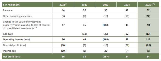 No ano seguinte, a socimi aumentou 147% seus lucros. O relatório de atividade enviado ao Euronext em Paris mostra um lucro de 84 milhões, impulsionado pela revalorização de ativos e por uma receita que também aumentou, passando de 47 milhões em 2024 para 62 milhões ao fim do último dezembro. O resultado operacional alcançou 117 milhões.