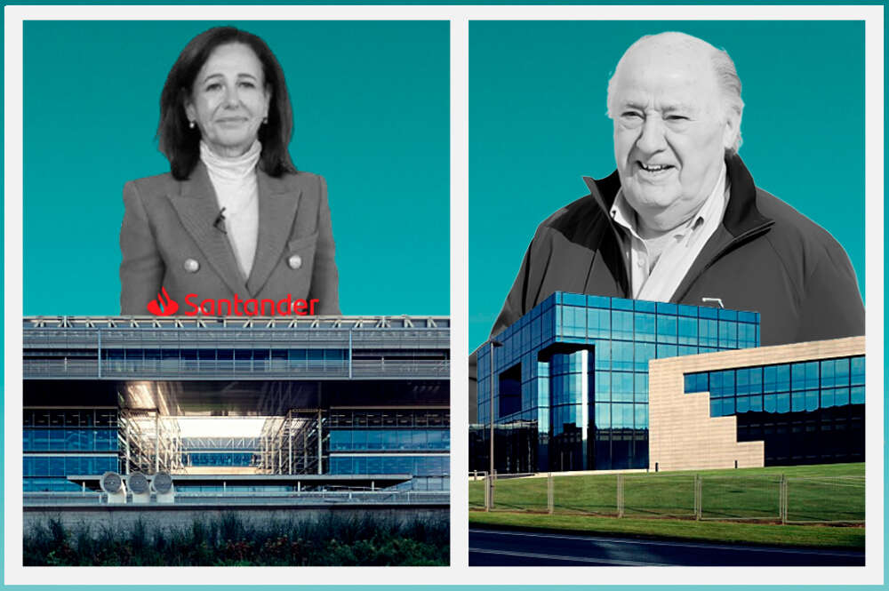 Inditex e Santander posicionam-se como primeira e segunda empresa por capitalização no Ibex, seguidas pela Iberdrola. Montagem: Pablo Ares Heres
