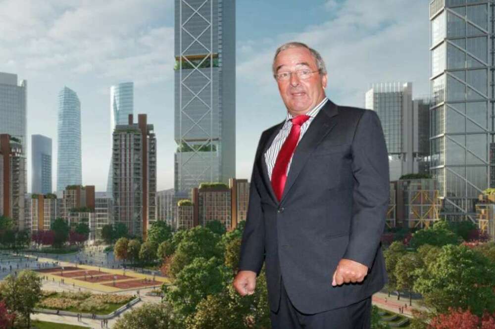 Jacinto Rey, presidente do Grupo Empresarial San José, com o skyline de Madrid Novo Norte ao fundo