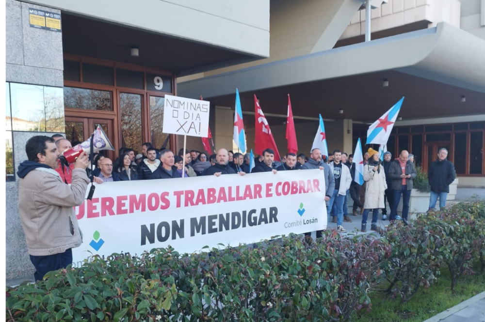 Protesto em frente aos escritórios da Losán em A Corunha pelos atrasos no pagamento dos salários / CIG