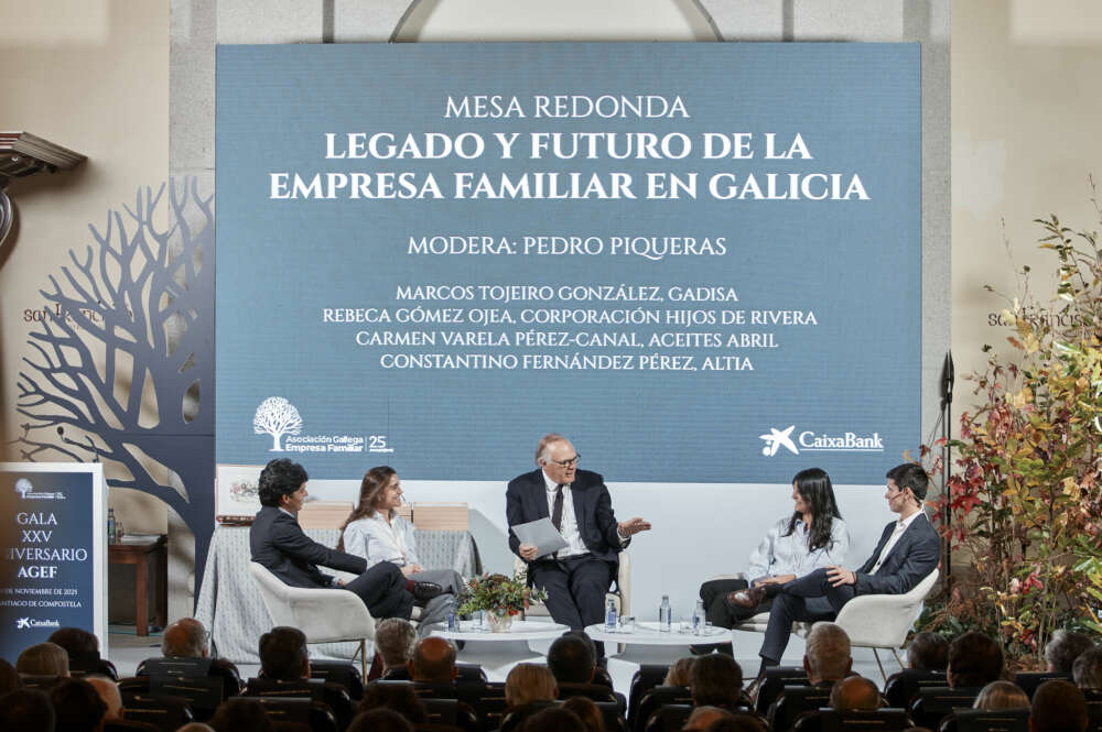 Sopra velas a Associação Galega da Empresa Familiar, que nesta terça-feira celebrou o 25º aniversário da sua constituição no Hotel Monumento San Francisco de Santiago com uma gala que serviu para distribuir prêmios e apresentar as verdadeiras ‘próximas gerações’ de quatro grandes companhias da Galiza. A associação organizou uma mesa de debate sobre o “Legado e futuro da empresa familiar na Galiza” na qual participaram os seguintes elos na linha sucessória de Gadisa, Hijos de Rivera, Altia e Aceites Abril, pessoas jovens, extraordinariamente formadas e já integradas, em maior ou menor medida, nas dinâmicas dos seus grupos familiares.