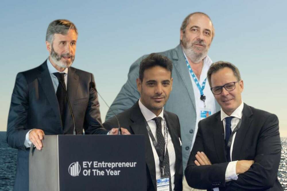 Da esquerda para a direita, o presidente da Profand, Enrique García Chillón; os fundadores da Wofco, Alberto Barreiro e Borja Tenorio; e, em segundo plano, o CEO da Nova Pescanova, Jorge Escudero