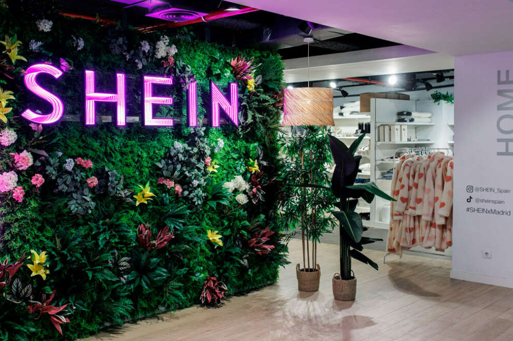 Placa de Shein durante a sua inauguração, no ABC Serrano, a 26 de abril de 2024, em Madrid (Espanha). Alejandro Martínez Vélez / Europa Press