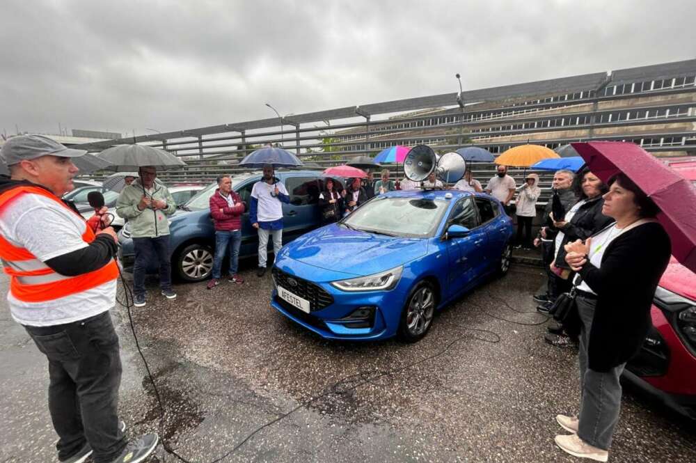 Imagem da concentração dos membros da Associação de Afetados Stellantis (Afestel) em frente à planta de Balaídos / Afestel