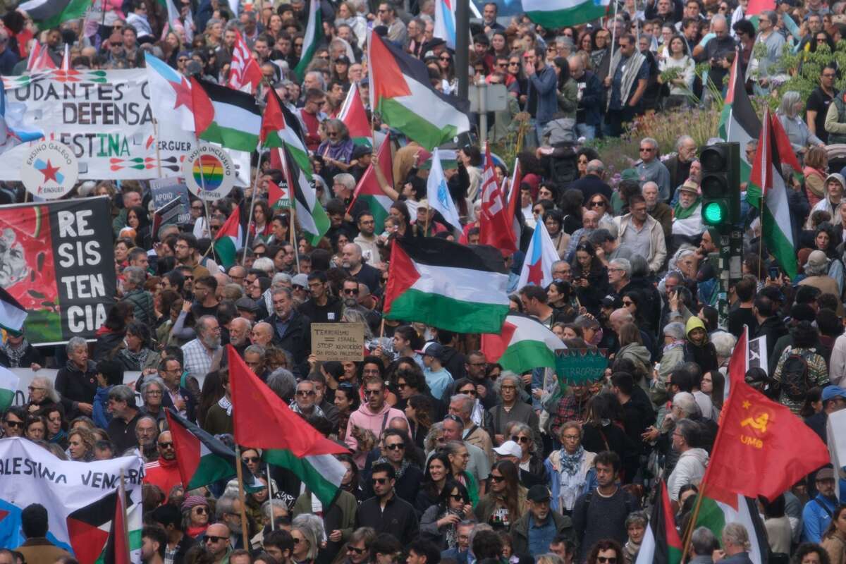 Ana Pontón e José Ramón Gómez Besteiro estiveram presentes nesta manifestação que reuniu milhares de pessoas que exigiram que "os palestinos tenham seu estado livre e independente" após "77 anos de ocupação"