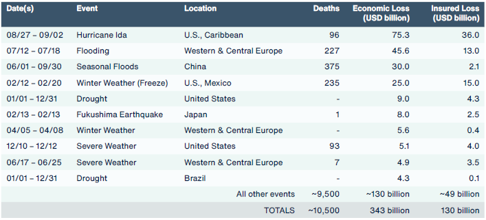 343.000 millones de dólares en pérdidas económicas mundiales relacionadas con clima y catástrofes en 2021